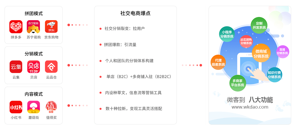 完善的拓客體系,分銷、社區團購、知識付費,多熱門模式自由組合!